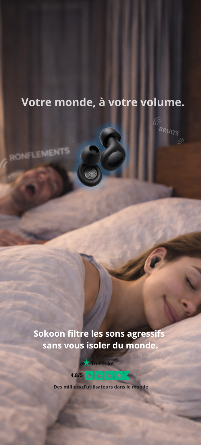 Nous avons créé Sokoon pour offrir une solution simple et accessible au problème que tout le monde minimise, mais que tout le monde ressent : l’excès de bruit dans nos vies.