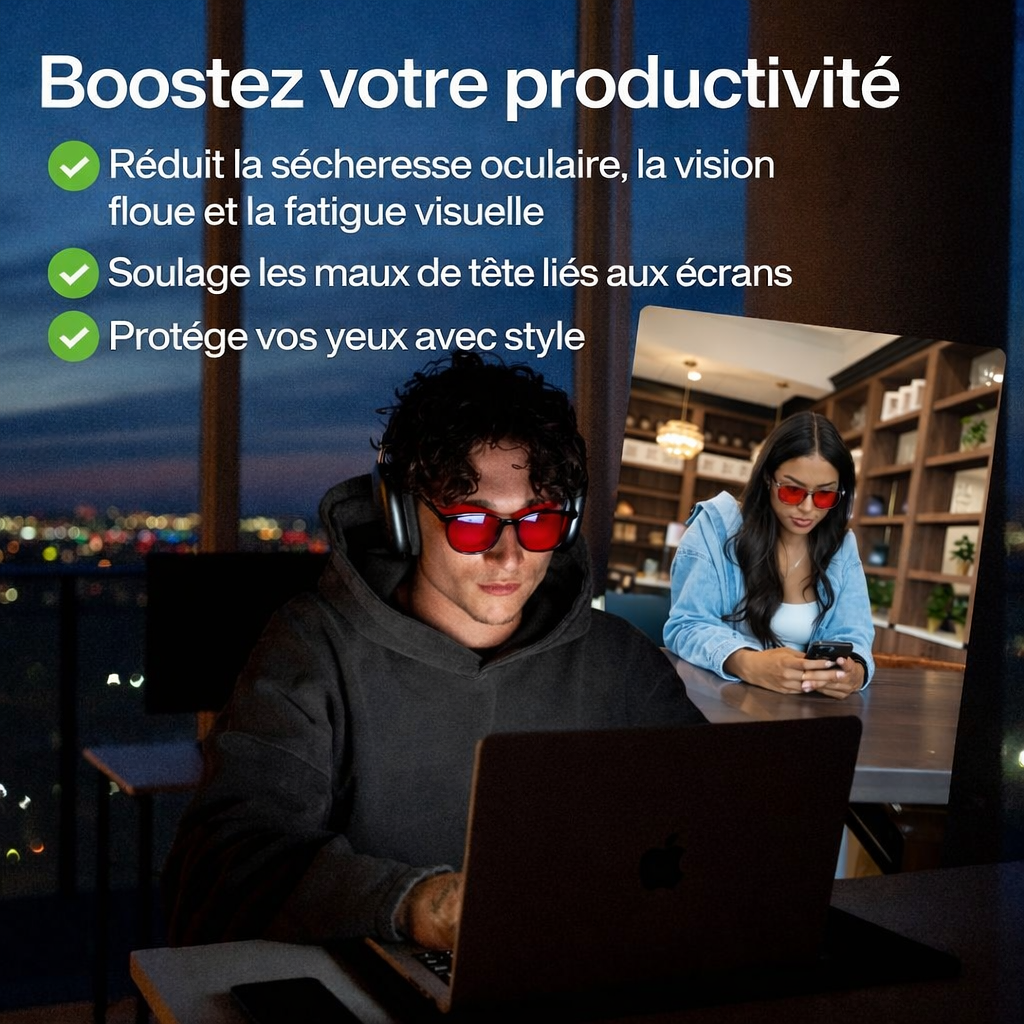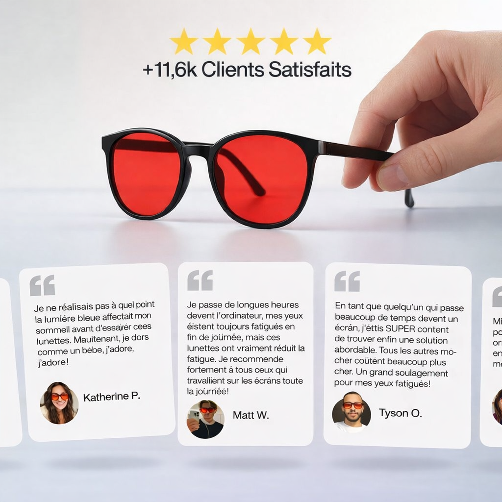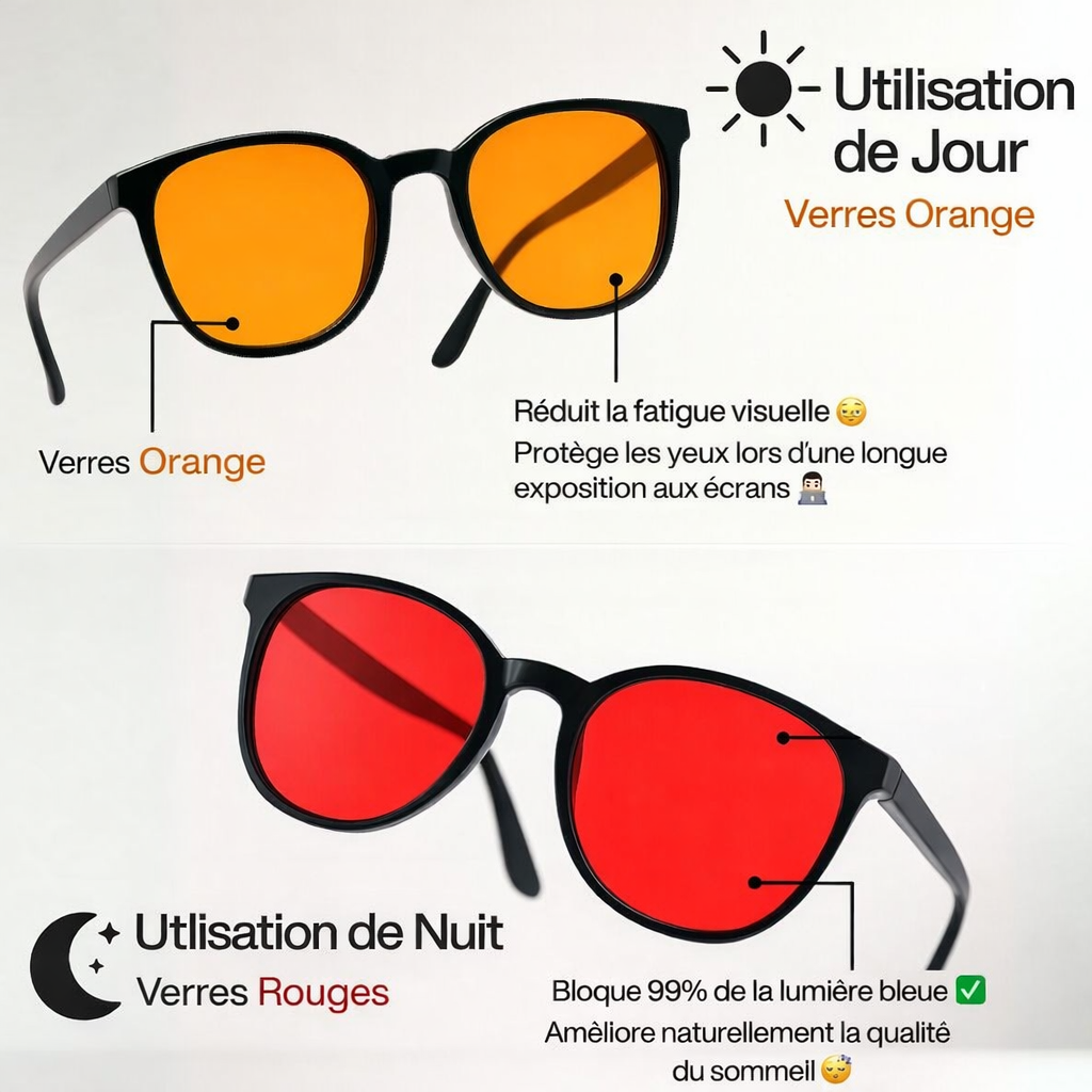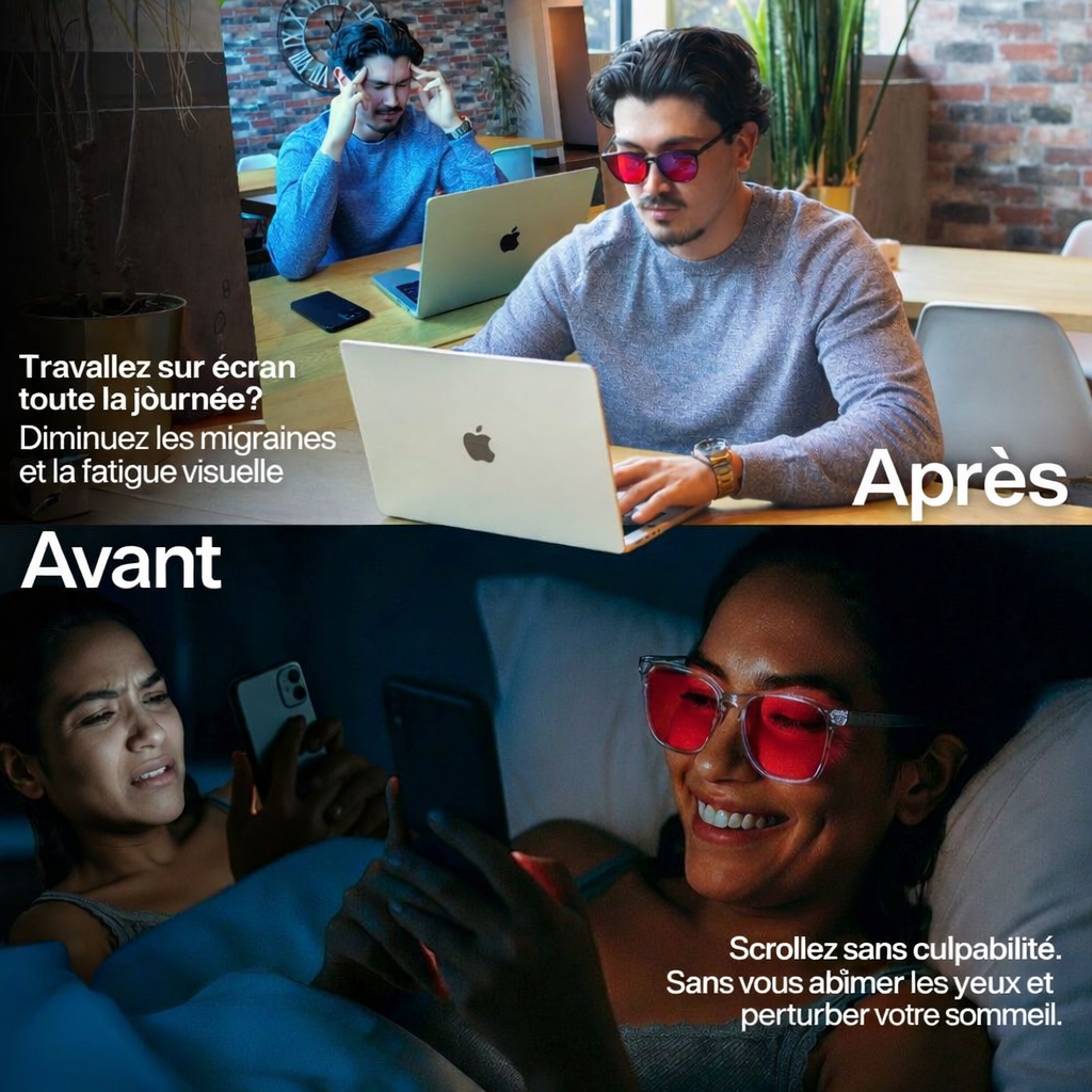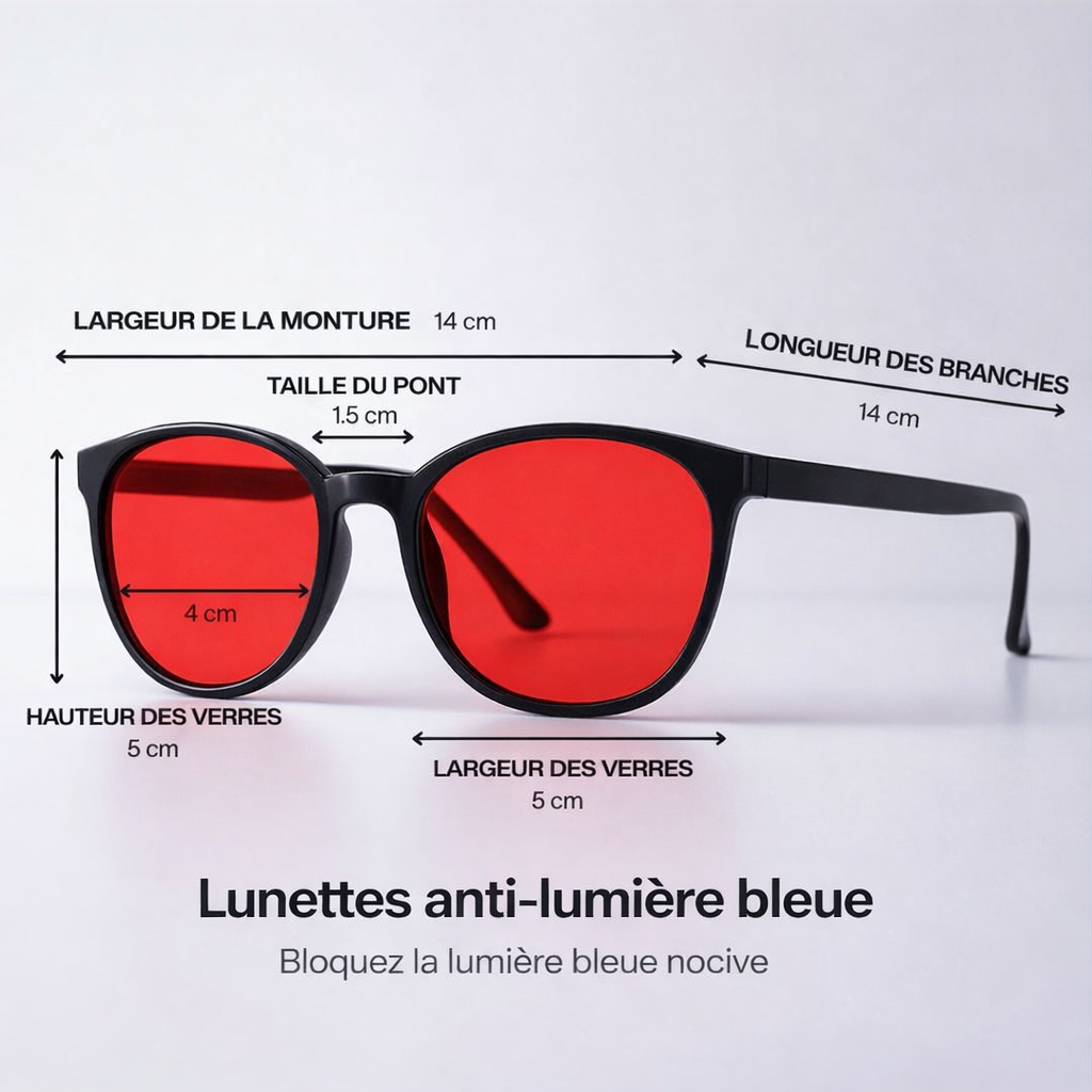 Protégez vos yeux et améliorez votre sommeil naturellement grâce à nos lunettes anti-lumière bleue à verres rouges.