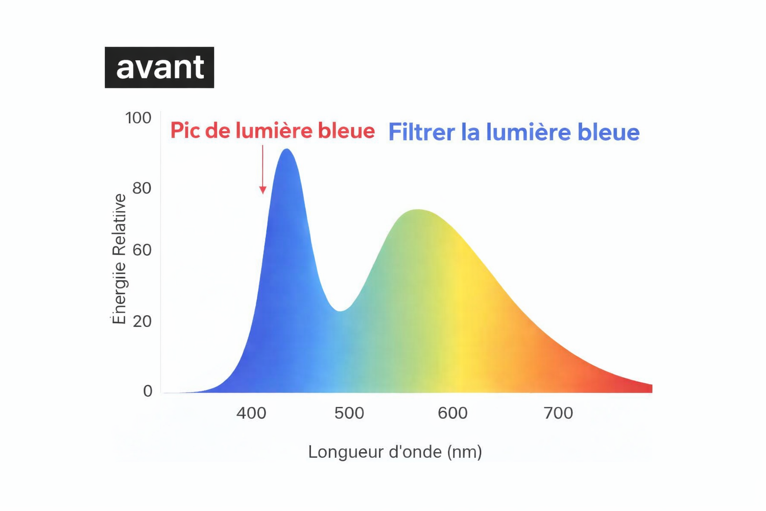 Contrairement aux verres classiques peu efficaces, elles bloquent jusqu’à 99 % de la lumière bleue et verte (400-520 nm), responsables de la fatigue visuelle, des maux de tête et des troubles du sommeil.