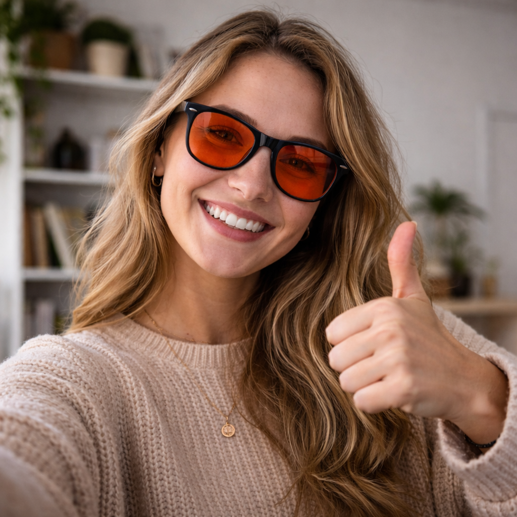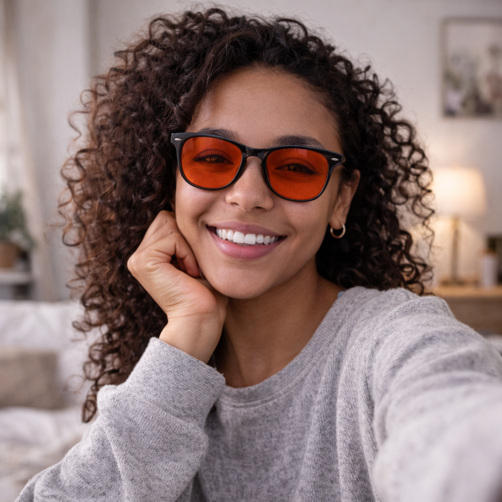 Nos lunettes à verres rouges bloquent les longueurs d’onde nocives, réduisent la tension oculaire et favorisent un sommeil plus profond — naturellement, sans compléments.